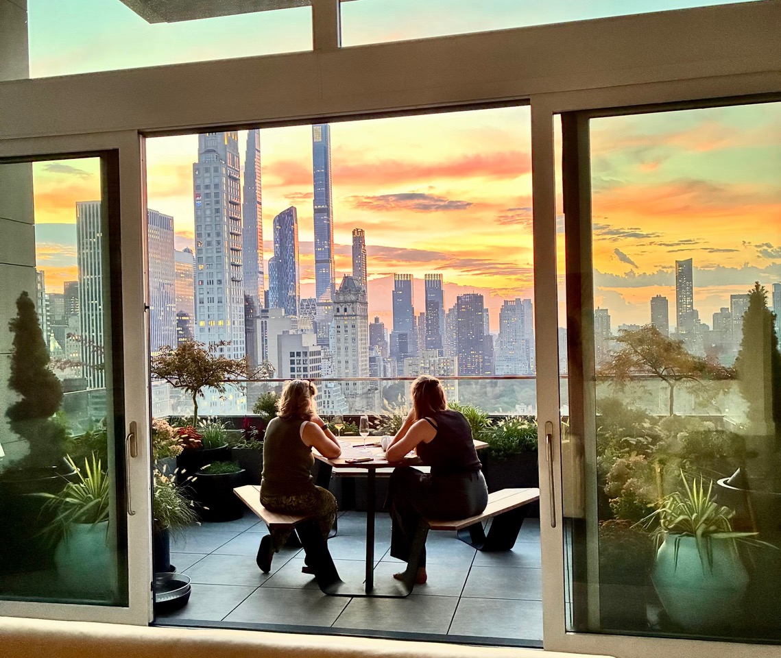 This rooftop terrace on Manhattan’s Upper East Side is all about the stellar view! We designed a lush mix of container garden plantings that would give the feeling of verdancy, without competing with the view. Weeping Japanese maples frame the terrace on each far end, complemented by variegated yuccas, ornamental grasses, and spiral topiaries.